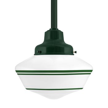 Each high lumen light is constructed and assembled in our Florida-based manufacturing facility, demonstrating our sincere commitment to quality. These pendants can take on a business’s preferred style with colorful finishes and optional stripes for the schoolhouse shade!