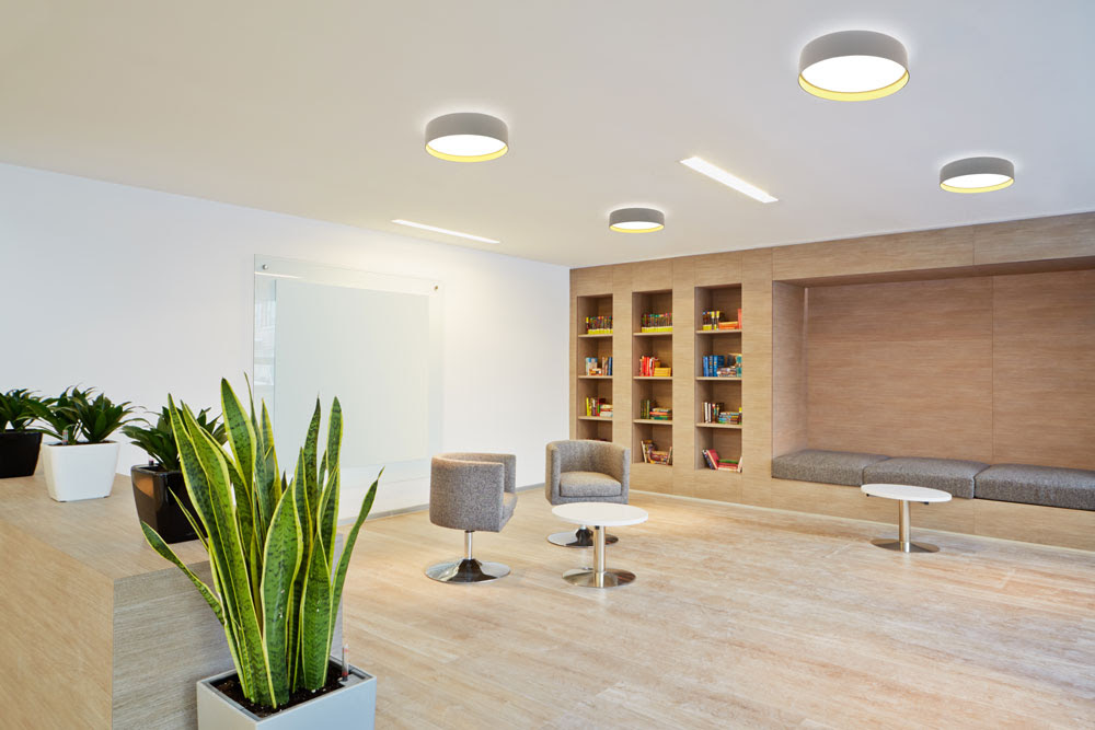This stunning luminaire is offered with up/down lighting and a soft white translucent lens that allows the integrated energy efficient LED light to cast a warm, ambient glow boosting comfort, health and productivity.