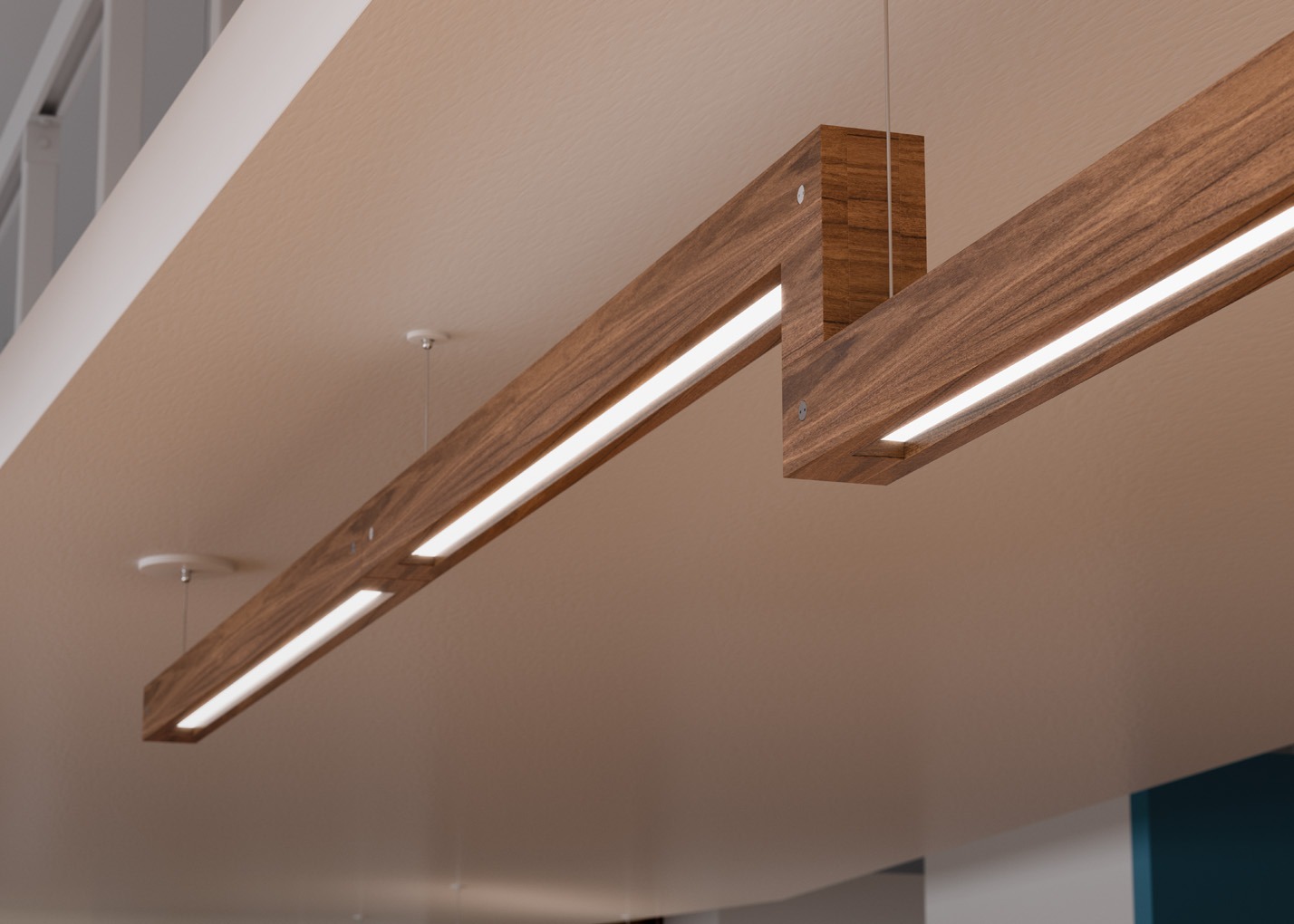 3″ x 3″ linear wood pendant available in 4′ and 8′ lengths with direct, indirect, and direct/indirect illumination producing up to 1,000 lm/ft.