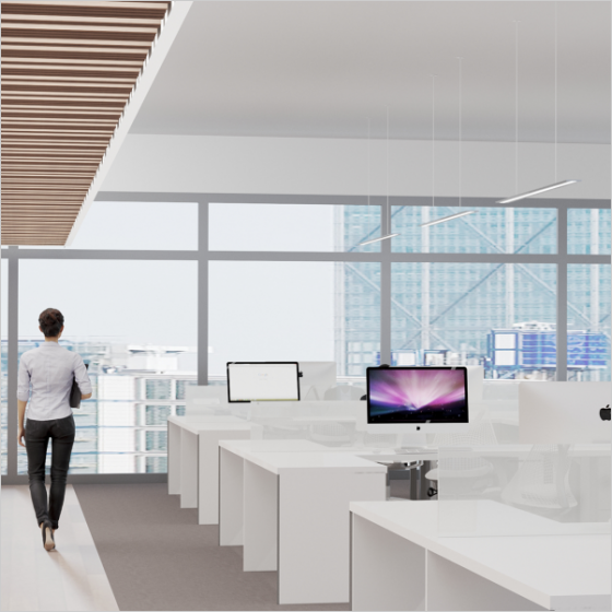 Direct/indirect lighting for ambient, open office and conference room applications.